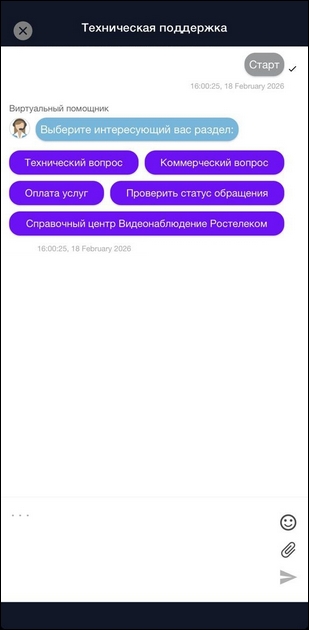 Чат-бот технической поддержки позволяет быстро получить ответ на интересующий вопрос.