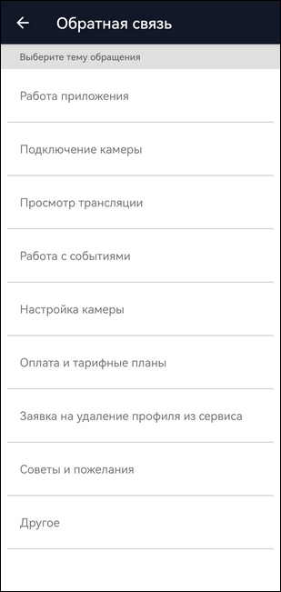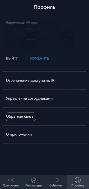 Выберите пункт «Обратная связь».