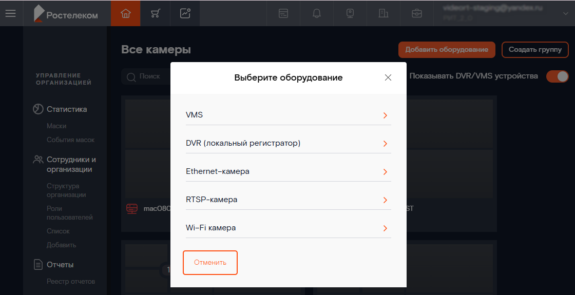 В выпадающем списке выберите пункт «DVR (локальный регистратор)».