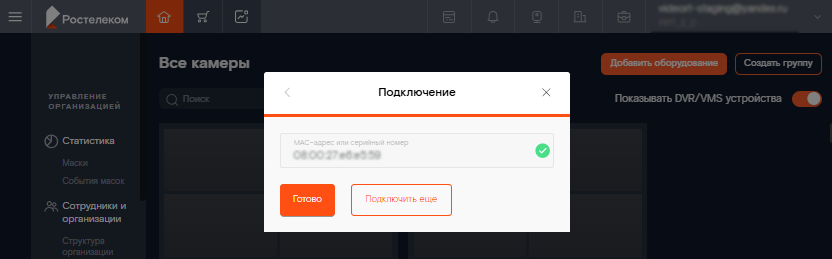 Укажите серийный номер регистратора. Можно подключить сразу несколько устройств, введя их серийные номера через запятую, пробел, перевод строки или точку с запятой.
