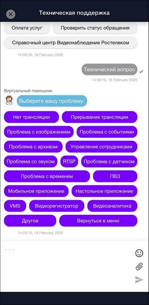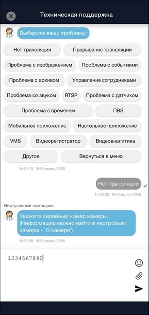 Чат-бот технической поддержки позволяет быстро получить ответ на интересующий вопрос.